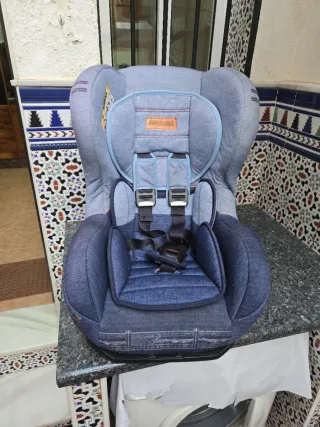 Silla de coche para bebé de la marca Prenatal, con un diseño moderno en tela vaquera. - Tapicería en tejido denim. - Cinturón de seguridad de 5 puntos. - Reposacabezas ajustable.