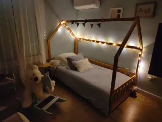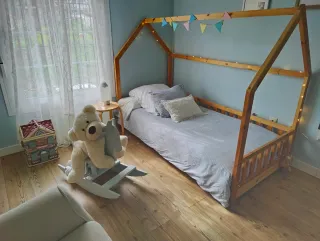 Estructura de cama para habitación infantil, con un diseño de casita. La cama es la Atmosphera - Cama cabaña infantil Bosco de 90x190