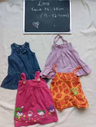 Lote 4 vestidos bebé 9-12 meses, 74 a 78 cm