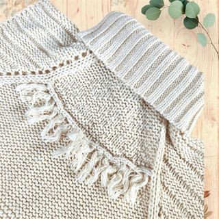 Poncho de punto para niña con cuello alto y detalles de flecos. - Tejido de punto suave. - Diseño con cuello alto. - Adorno de flecos en la parte delantera.