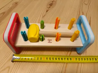 Juguete de motricidad de la marca Hape, ideal para los más pequeños a partir de 1 año. Fabricado en madera con piezas de colores. En perfecto estado. - Incluye martillo y piezas para golpear. - Diseño colorido y atractivo. - Fomenta la coordinación mano-ojo.
