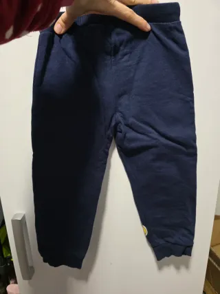 Pantalón de chándal para niño en color azul marino. Es cómodo y práctico. - Cintura elástica. - Bajo con puño. - Detalle de un pequeño dibujo amarillo en el bajo.
