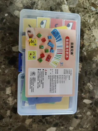 Juego de construcción Yunying Brothers para niños a partir de 3 años. Incluye bloques y tarjetas para crear diferentes caras. - Incluye bloques de madera. - Incluye tarjetas de patrones. - Fomenta la creatividad y la motricidad fina.