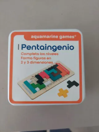 Juego de lógica Pentaingenio de Aquamarine Games.。 - Completa los niveles. - Forma figuras en 2 y 3 dimensiones. - Incluye tablero y piezas de colores.