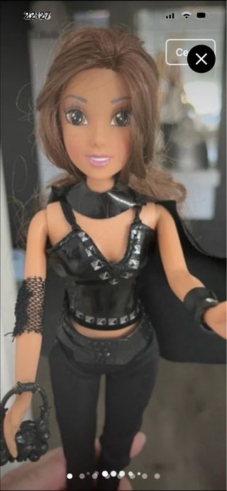 Mira mis valoraciones todos mis artículos nuevísimos. chica vampiro con pelo muy bonito y cuidada . Lleva ropita muy chula: bolsito, zapatos , cinturón, traje negro y capa. Pídela y mañana mismo la envío 📦 31cmpelo ligetamente enredado
