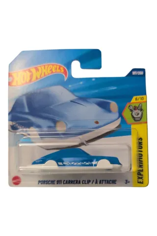 Coche Hot Wheels Porsche 911 Carrera Clip. - Color azul con detalles blancos. - Parte de la colección Experimotors. - Número de serie 187/250. - Serie 6/10.