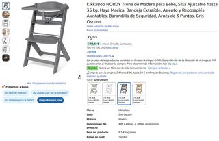 PRECIO NO NEGOCIABLE. NUEVA A ESTRENAR EN CAJA PRECINTADA. KikkaBoo NORDY Trona de Madera para Bebé, Silla Ajustable hasta 35 kg, Haya Maciza, Bandeja Extraíble, Asiento y Reposapiés Ajustables, Barandilla de Seguridad, Arnés de 3 Puntos, Gris Oscuro Diseñada para adaptarse al crecimiento del bebé. Su estructura de madera le da un aspecto moderno y cálido. - Material: Madera. - Color: Gris. - Diseño ajustable. - Hasta 35 kgs. DESCRIPCIÓN EN FOTOS. SOLO HAGO DESCUENTO COMPRANDO VARIAS COSAS A LA VEZ. 🔴 NO ENVÍO 🔴
