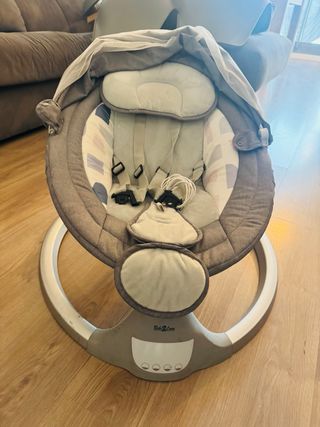 Mecedora eléctrica para bebé en color gris. Diseñada para ofrecer comodidad y entretenimiento. - Suave acolchado. - Capota protectora. - Arnés de seguridad.