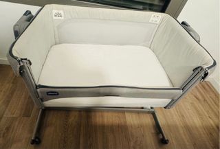 Cuna de colecho Chicco Next2me Magic en color gris. - Diseño moderno y funcional. - Laterales de malla transpirable. - Base con ruedas para facilitar el movimiento. - Incluye colchón.