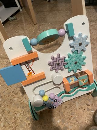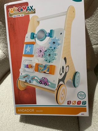 Andador de madera Woomax en perfecto estado, ideal para los primeros pasos. - Diseño colorido con actividades. - Ruedas para facilitar el movimiento. - Incluye elementos interactivos para el desarrollo.