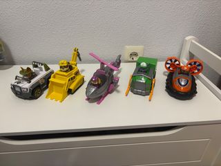 Colección de vehículos de la Patrulla Canina inspirados en la Super Película. Bien cuidados y todos funcionando pawn patrol. - Incluye 6 vehículos con sus personajes. - Vehículo de Skye (morado y gris). - Vehículo de Chase (azul). - Vehículo de Zuma (naranja). - Vehículo de Ryder (amarillo). - Vehículo de Marshall (rojo). - Vehículo de Rocky (verde).