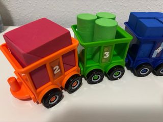 Tren de juguete con vagones numerados