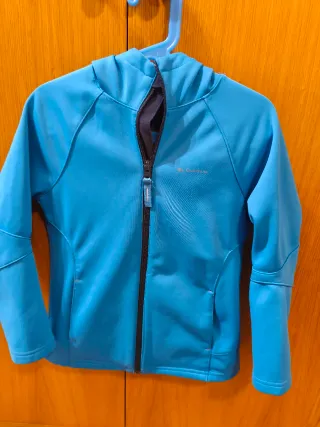 Cortavientos infantil de la marca Quechua en color azul. Talla5 - Cierre de cremallera. - Capucha. - Bolsillos laterales.