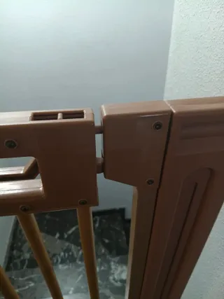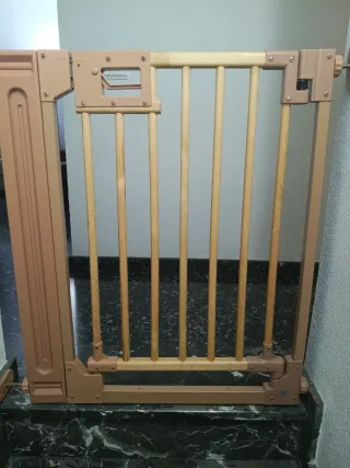 Barrera de seguridad para el hogar, combinando madera y metal para puertas y escaleras. Recomendable para bebés y animales sin necesidad de taladrar. Apertura de 75 a 82 cm y con sistema de cierre.