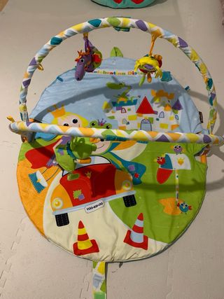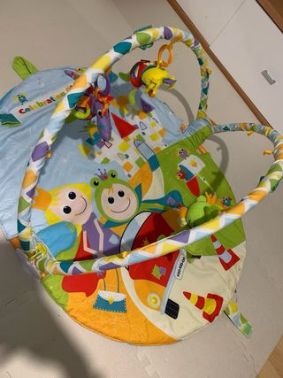 Este parque infantil para bebé cuenta con un diseño colorido y divertido, inspirado en un cuento de hadas con un castillo y personajes. - Arco de juegos con peluches colgantes. - Base acolchada con dibujos.