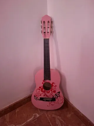 Guitarra española de juguete de 76 cm, ideal para los más pequeños. Su diseño en color rosa y los detalles de mariposas la hacen muy atractiva. Recomendado desde 6 años para el Desarrollo de la Inteligencia, la Psicomotricidad Fina, la Imaginación y la Creatividad - Color rosa vibrante. - Decoración con mariposas y motivos florales. - Tamaño adecuado para niños.