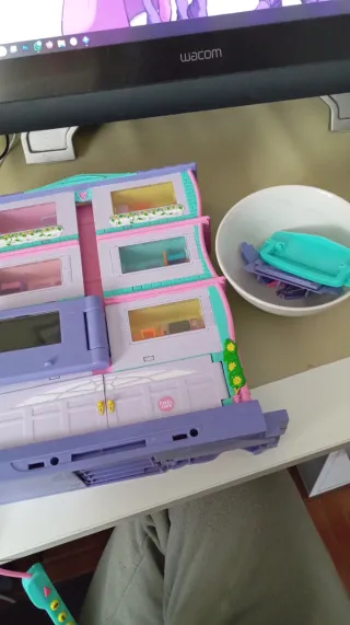 No van juntos pero yo los he tenido en exposición así y quedan muy monos. La concha tiene música pero no sé si funciona o no aunque no tiene mala pinta el mecanismo interno. Bebe de 2008 de hasbro y concha de 2017. Todo oficial.