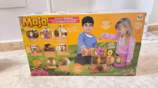 Juguete de la Colmena de Maya. Incluye muñecos articulados de la Abeja Maya, de la profesora Casandra y de la Reina. Es modular. Se pueden abrir las paredes de la colmena para jugar. Algunas ventanas se abren para que entren las abejitas volando. Tiene un árbol en el interior para transportar un tarro de miel. En el exterior tiene un tobogán y un reloj con ascensor. La profesora Casandra imparte clase en su pupitre con la pizarra. Hay un columpio para diversión de los pequeños a la hora del recreo. Incluye caja original en perfecto estado - Basado en la serie de TV. - Marca Limo