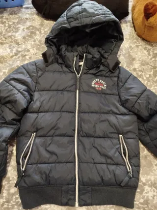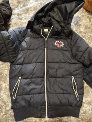 Cazadora acolchada para niño de la marca H&M. - Color azul marino. - Con capucha. - Cierre de cremallera. - Bolsillos laterales con cremallera. Tiene un cosido por eso tan barata