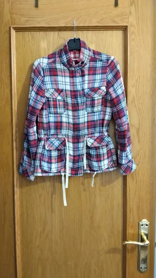 Chaqueta de cuadros para niña de la marca Isabel Marant. Es una prenda versátil y con un diseño juvenil. - Diseño a cuadros en tonos rojos, blancos y azules. - Cintura ajustable con cordón. - 4 bolsillos en la parte delantera con solapa.