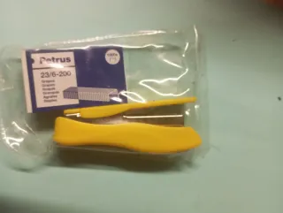 Caja de grapas y grapadora de la marca Petrus. Grapadora Majorette Petrus - Modelo: 23/6-200. - Incluye 1000 grapas.