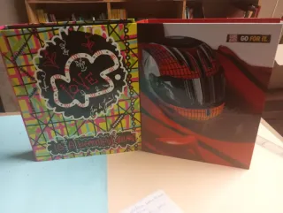 Carpeta decorada con un diseño vibrante y el mensaje Love is a beautiful thing. - Diseño frontal con la palabra LOVE en el centro. - Patrón geométrico de fondo en colores vivos. - Cierre de caja.