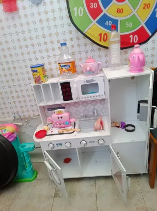 Divertida cocina de juguete para que los más pequeños desarrollen su imaginación. - Incluye horno, microondas y fregadero. - Cuenta con accesorios como platos y utensilios. - Diseño colorido y atractivo.