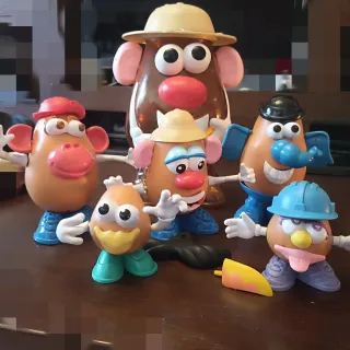 Muñeco del Sr. Patata de la película Toy Story. Un juguete clásico para coleccionar o jugar. - Incluye sombrero, gafas, nariz, bigote, boca y orejas. - Piezas intercambiables para personalizar su apariencia.