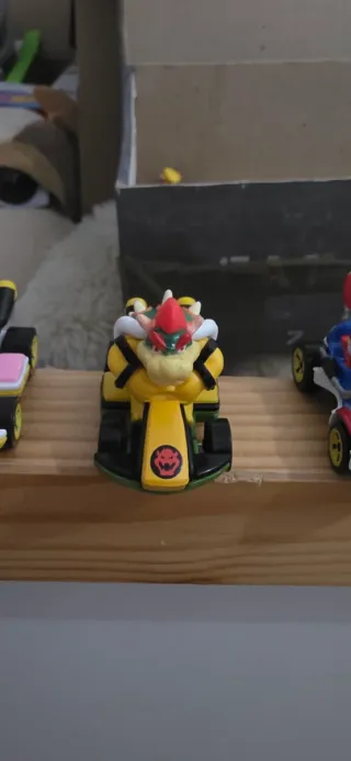 Figura de Bowser conduciendo su kart de Mariokart Hot Wheels. Es el que lleva el planeador pero me falta el palo, el coche es igual q el standart kart normal