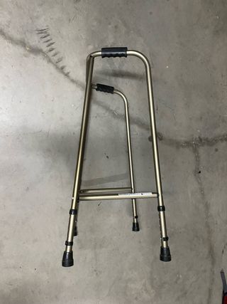 Andador auxiliar para personas que necesitan apoyo adicional. - Estructura metálica resistente, muy leve y antioxidante. - Empuñaduras acolchadas para mayor comodidad. - Patas con puntas de goma para estabilidad. - altura ajustable