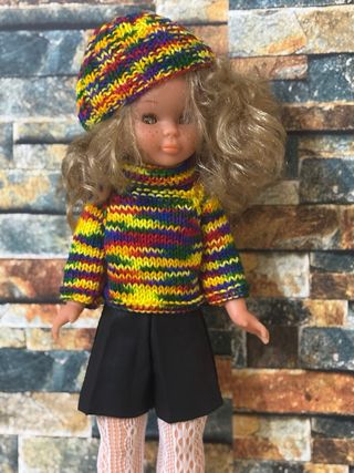 Conjunto de jersey y gorro hecho a mano para muñeca Nancy o similares , ideal para un look divertido y colorido. - Jersey de cuello alto con rayas arcoíris. - Gorro a juego con diseño de rayas. Hay más ropa de muñecas en mi perfil Bolso falda chaqueta pantalón top zapatos zapatillas jersey abrigo vestido deportes pantalón vaquero camisa camiseta barbie Nancy nenuco playmobil playstation xbox barriguitas leslie famosa coleccion new kika Mari Loli planeta agostini vintage Paola reina Quiron jagget lesly bebé leer cd vinilo libros música antiguo