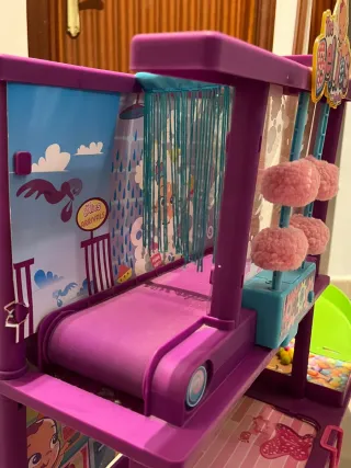Casa de juguete para muñecas Bellies con literas y accesorios. Bellies Resort Spa Y maquina Viru Tester - Literas de color naranja. - Incluye escaleras. - Decoración interior con motivos infantiles. Está todo perfecto y regalo 3 Bellies!!!