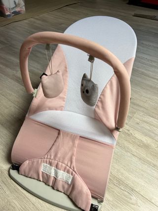Hamaca para bebé en color rosa, con un diseño cómodo y seguro. - Arco de juegos con peluches que se puede quitar. - Tejido suave y transpirable. - Tiene diferentes posturas para estar más tumbado o levantado. Se puede doblar para que ocupe menos