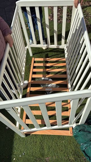 Colchón para cuna, usado para una mascota.