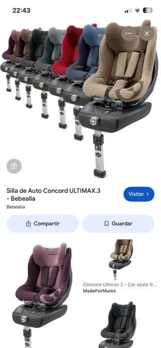 Sillas de coche Concord Ultimax2 en color gris oscuro y otra marron. Diseñada para la seguridad y comodidad de los más pequeños. 70€ cada una - Sistema de arnés de 5 puntos. - Reposacabezas ajustable. - Funda extraíble y lavable.