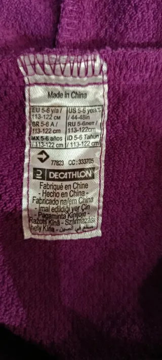 Albornoz infantil de color morado con capucha y cinturón. - Interior suave y cálido. - Dos bolsillos delanteros. - Logo de Nabaiji bordado.