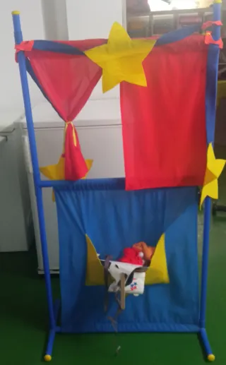 Conjunto de títeres para teatro infantil, inspirado en el cuento de Caperucita Roja. - Incluye personajes como el lobo, los cerditos y Caperucita. - Diseños coloridos y divertidos. - Ideal para estimular la imaginación.