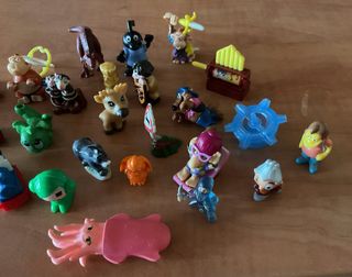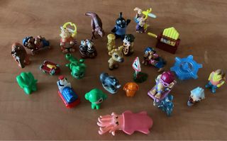 Colección de figuras y juguetes variados de los años 2000. - Incluye dinosaurios, animales y personajes. - Diversos colores y diseños.