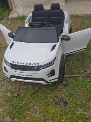 Coche eléctrico infantil de color blanco, ideal para que los más pequeños disfruten. No tiene mando. - Diseño deportivo. - Asientos negros. - Ruedas negras.