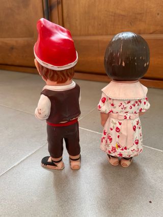 Figuras de colección de Nanos Reus, representando a un niño y una niña. - Diseño tradicional. - Colores vivos. - Se venden juntos