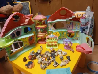 Conjunto de casita para perritas, con una cloccion de cachorros, ideañ para cuidarlos darles de comer, ducharlos... - Incluye casita de dos pisos con accesorios. - Set de figuras de animales. - Ideal para juegos de rol.