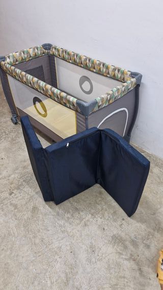 Cuna de viaje Lionelo, con doble función (cuna + parque de juego). Aparte de la esterilla de espuma que viene de origen se incluye un colchón extra de espuma plegable (de la marca Babify) que aporta mayor confort que la esterilla para dormir - Diseño moderno con estampado geométrico. - Laterales de malla para ventilación. - Ruedas para facilitar el transporte. - Apertura lateral - Colchon babyfy - Medias 8 - Está como nuevo ya que se ha usado 3 veces contadas. - Precio actual en amazon (2026) : 70 euros la cuna + 20 del colchón