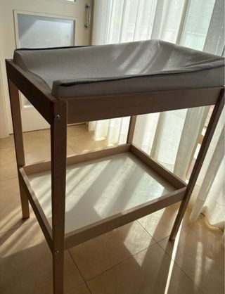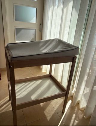 Cambiador de bebé de madera de Ikea. Ideal para la habitación infantil. Incluye la estructura, el colchón cambiador y la funda lavable.