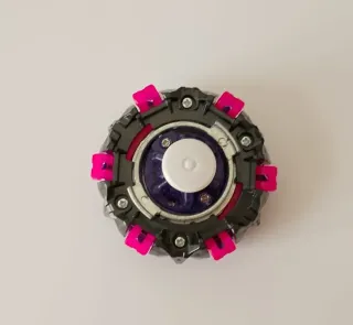 Beyblade con detalles en morado y rosa. - Diseño con púas. - Piezas metálicas y de plástico.