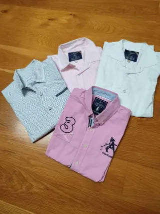Lote de ropa para niño en talla 8. Prendas en buenas condiciones. Algunas de buenas marcas y de gran calidad. - 7 Camisetas de manga corta. - 5 camisetas manga larga. - 2 Polos manga corta. - 2 Camisas manga larga. - Una sudadera y un pantalón pirata.
