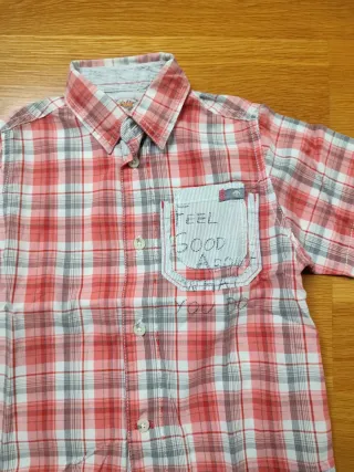 Camisa de manga corta para niño con estampado de cuadros. - Marca: Timberland - Talla: 4 años - Diseño a cuadros en tonos rojos, blancos y azules.