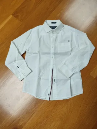 Camisa de manga larga en color blanco para niño. - Cuello camisero. - Cierre de botones. - Detalle de bordado 'N' en pecho y bajo.