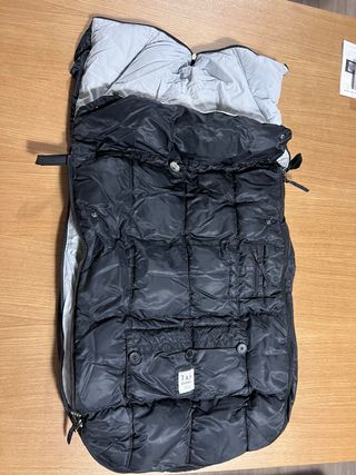 Saco de invierno para bebé en color negro. Ideal para mantener al pequeño abrigado durante los meses más fríos. - Exterior acolchado. - Interior forrado. - Cierre de cremallera. - Detalle de bolsillos frontales.