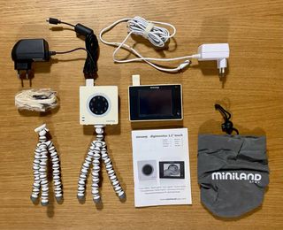 Vigilabebés Miniland Digimonitor 3.5 Touch. - Pantalla táctil de 3.5 pulgadas. - Incluye cámara y monitor. - Adaptadores de corriente. - Dos trípodes flexibles. - Bolsa de transporte.