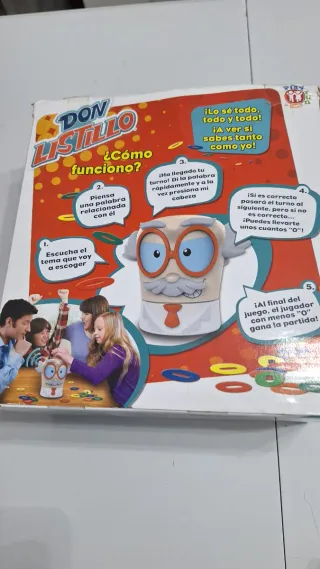 Divertido juego de mesa Don Listillo para poner a prueba tus conocimientos. Ideal para jugar en familia o con amigos. - Incluye 500 preguntas. - Edad recomendada: 8+ años. - Número de jugadores: 2+.